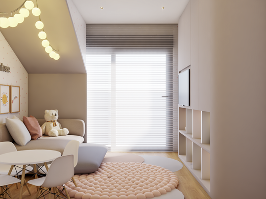 Estes ambientes acolhem os primeiros anos da infância e acompanham a criança em seu crescimento sem exigir substituições. Painéis contínuos, paleta em tons pastéis e mobiliário fixo garantem funcionalidade e leveza. Na brinquedoteca, cada escolha convida ao uso ativo — desde o acesso fácil aos brinquedos até os elementos lúdicos, pensados para estimular autonomia, memória e afeto.